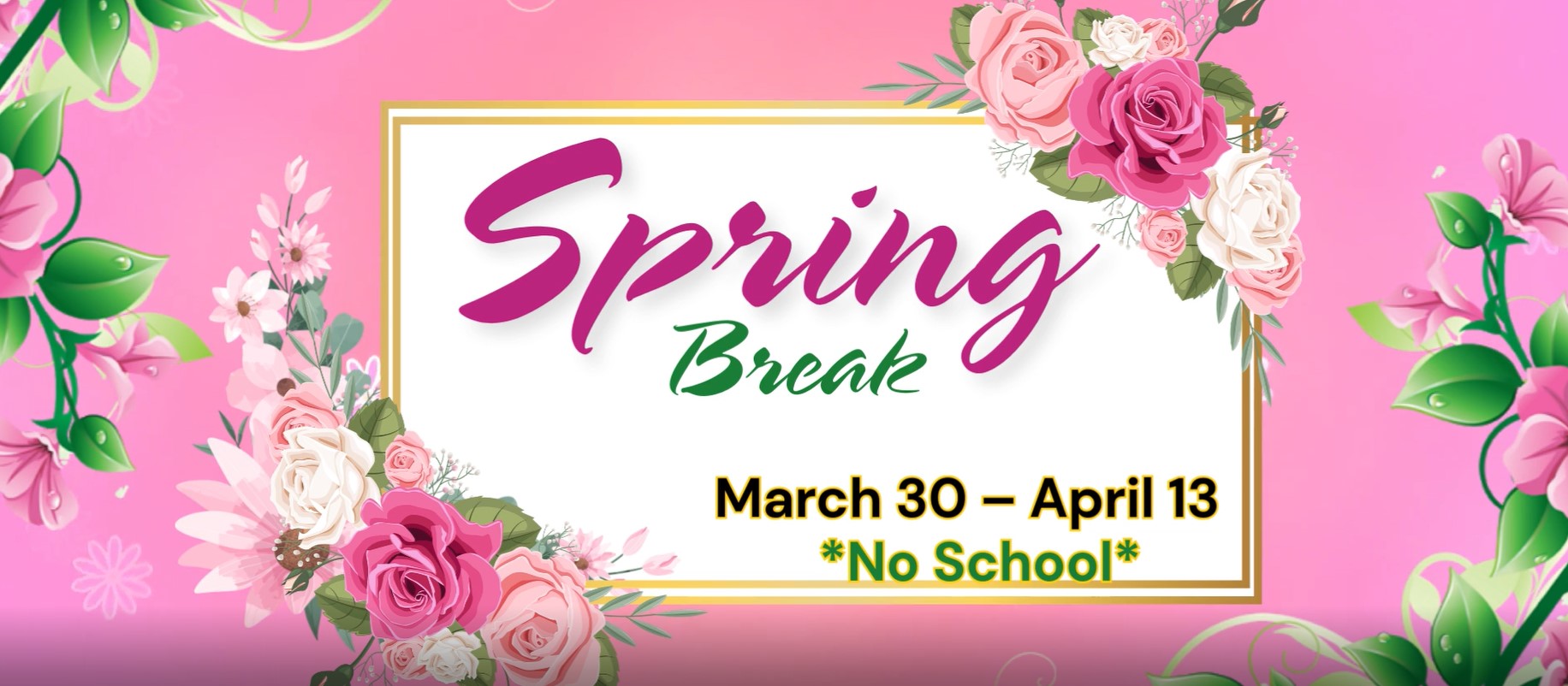 Hello Avondale Families, Please save the date of our Spring Break coming up on March 30th - April 13th! ENJOY your break!