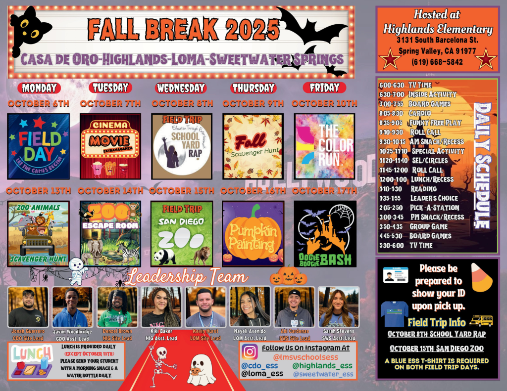 ESS will be open from 6 AM to 6 PM daily during the breaks. Students from other areas/districts may attend the ESS program during break time if space is available; however, students enrolled in the La Mesa-Spring Valley School District have priority.